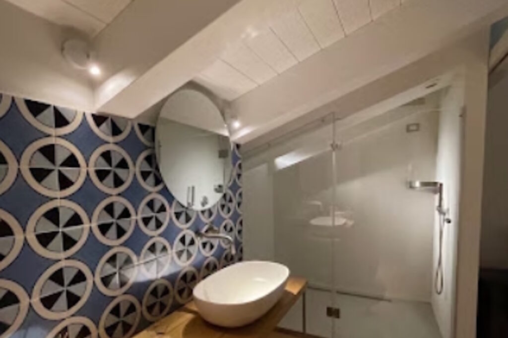 Lo stile classico, arricchito da elementi unici come ceramiche tradizionali, illuminazione Artemide e arredi d’antiquariato, crea un ambiente raffinato, caldo e accogliente.